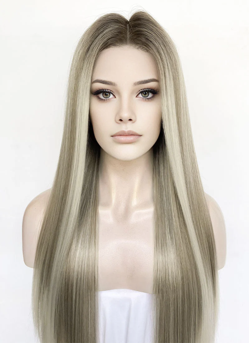 Mixed Blonde Money Piece Straight 13" x 6" Lace Top Lace Front Synthetic Wig LFS046