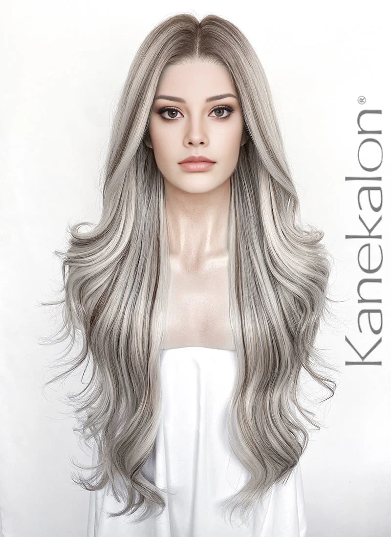 Balayage Mixed Blonde With Dark Roots Wavy 13" x 6" Lace Top Kanekalon Synthetic Hair Wig LFS057